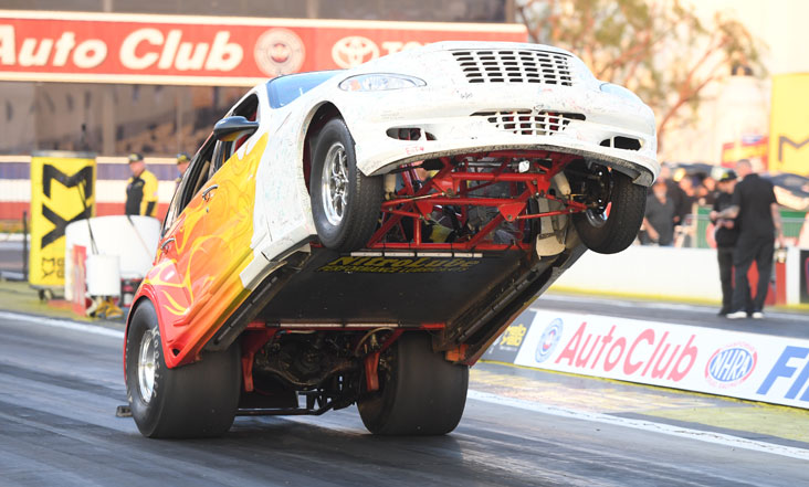 "Nitro Mike" Kunz and his unique PT Cruiser wheelstander performed for the fans after the second Pro qualifying session.