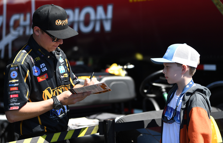 Rookie Top Fuel sensation Austin Prock signed autographs for another one of his growing legion of fans.
