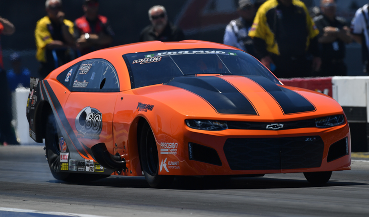 Defending event champion Jose Gonzales is the qualifying leader in the E3 Pro Mod series after powering his way to a record 5.64 in his turbocharged Q80 Camaro.