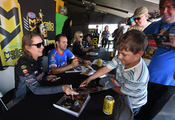 Fans also got to meet with the drivers during the Mello Yello autograph session. which this event included Pro Stock Motorcycle low qualifier Karen Stoffer, Hector Arana Jr., Brittany Force, and Cruz Pedregon.
