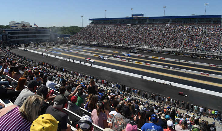 The huge grandstands at zMAX also were jammed with fans ready to witness the spectacle of four-wide NHRA action.