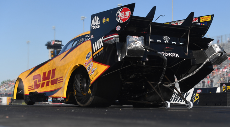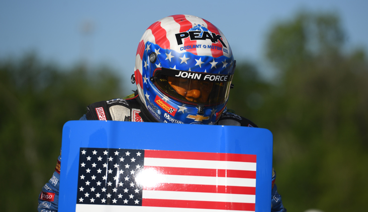 Funny Car legend John Force, still looking for career win No. 150, had low e.t. of the first round to advance.