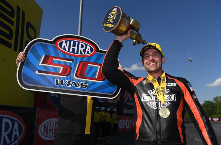 Andrew Hines became the 19th driver in NHRA history to reach the 50-win milestone and the first in Pro Stock Motorcycle. It's Hines' second win of the season.