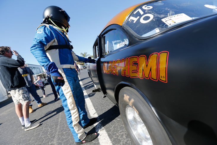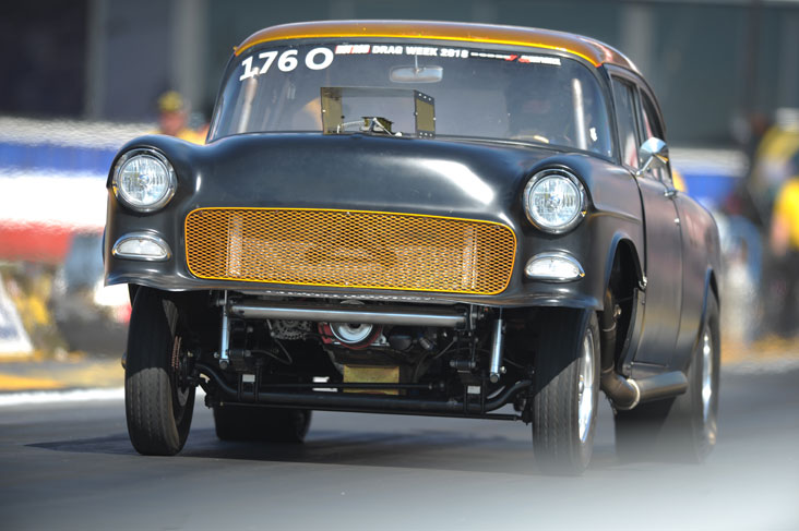 Finnegan, who handily won Friday’s first round, got the drop on Chase at the green in their second heat, but his Blasphemi ’55 bogged, and Chase and his Tri 5 By Fire raced ahead by the time they reached the 60-foot clocks.