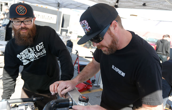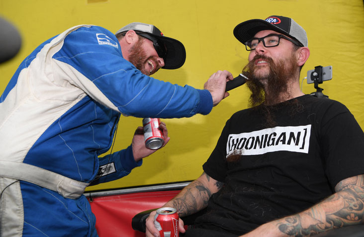 Hoonigan's Jon Chase, left, and RoadKill's Mike Finnegan, friendly rivals off the track; not so much on.