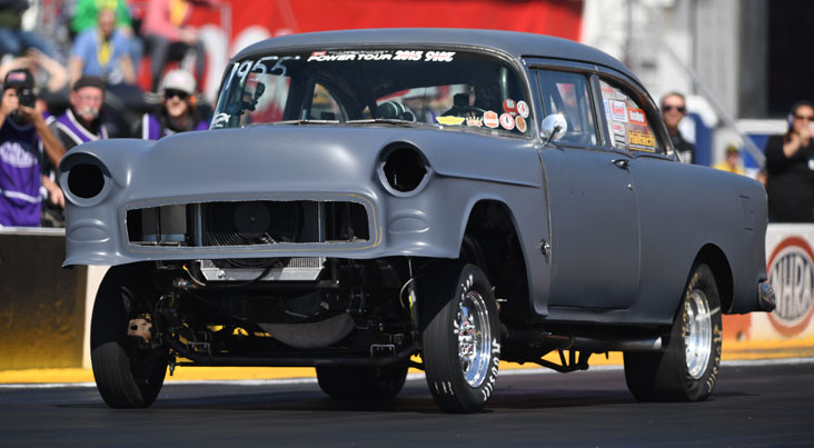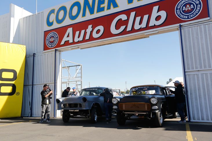 RoadKill’s Mike Finnegan polished off Hoonigan’s Jon Chase in two straight heats in their best-of-three Kall Out Kings gasser match race between their ’55 Chevys at the Lucas Oil NHRA Winternationals presented by ProtectTheHarvest.com.