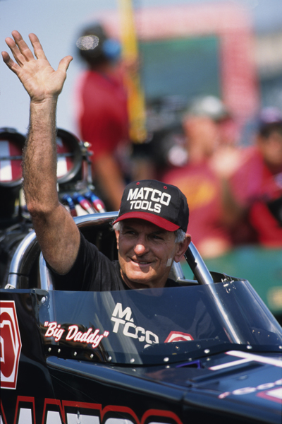 As Garlits towed triumphantly up the return road to the overwhelming roar of the crowd, another longtime pal, Connie Kalitta, and fellow Floridian Jerry Gywnn went over to congratulate him.