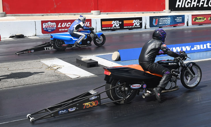 Terry Turner, Bakersfield, Calif., '86 Suzuki, 8.942, 143.43 def. Kahea Woods, Las Vegas, Nev., '95 Suzuki Gsxr, 8.755, 140.75.