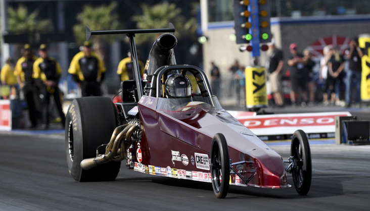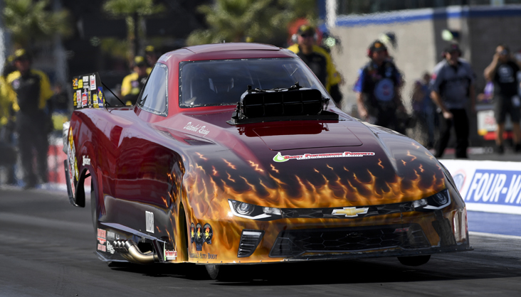 Since his first national event title last year in Seattle, Marshall has become one of the performance leaders in Top Alcohol Funny Car, and he proved it in Las Vegas, where he stopped Doug Gordon to win his second national event. Marshall made back-to-back runs of 5.46 and 5.47 in his wins against Brian Hough and reigning champ Sean Bellemeur and then won the final with an off-pace 5.70 after Gordon slowed to a 6.15. [video]