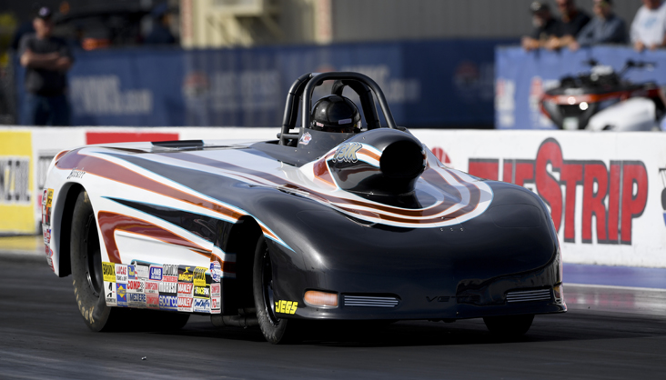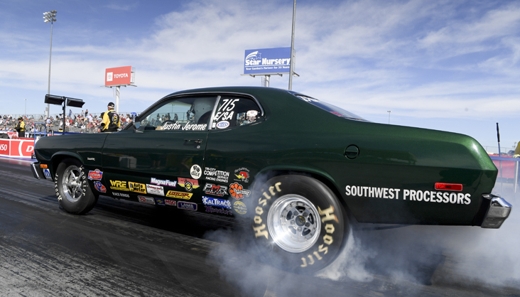 The Stock final featured a heads-up E/SA battle between Jerome and Ryan Mangus. Jerome left first with a .007 light and powered to the win, 10.81 to 10.85. He became the latest second-generation winner, joining his father, Jeff, who won the 2011 JEGS SPORTSnationals title in Fontana. Jerome earned his spot in the final following a quarterfinal victory against Ryan McClanahan. Jeff Jerome reached the fourth round, where he lost to Billy Maddox, preventing a possible father-son final round. [video]