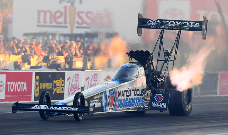 Antron Brown is sporting new colors for this event, banner Matco Tools Diagnostics on his Top Fueler.