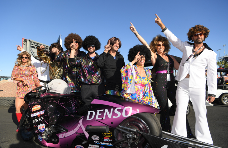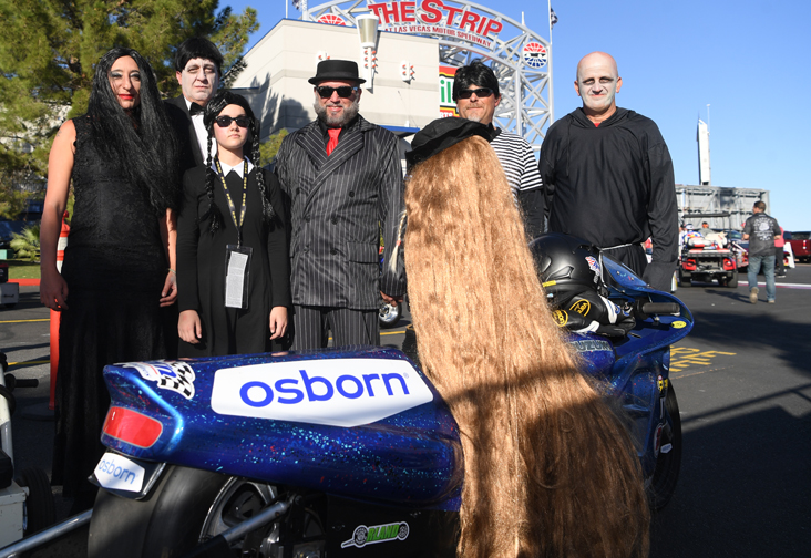 Andies Rawlings' Pro Stock Motorcycle team was definitely on "It" with their Adams family costumes.