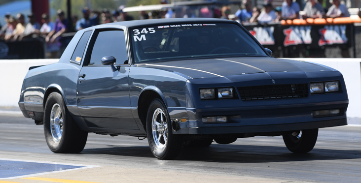 Jason Bergeon's ’84 Chevy Monte Carlo SS, powered by a 365-cid Chevy LS engine with a billet 80mm turbocharger, was int he running for the title early with passes of 10.016, 8.961, and 9.134 but ran under the 8.50 target on his final pass to receive the 20-second penalty, which dropped him to seventh place.