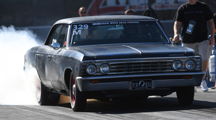 Rick Steinke's popular “Honk If Parts Fall Off” ’67 Chevelle four-door, powered by a small-block Chevy fitted with a single 88mm turbocharger, was crowned the champion of the special eight-car exhibition of Hot Rod Magazine Drag Week entries held during the NTK NHRA Carolina Nationals at zMax Dragway. Steinke’s four runs -- 8.623, 8.742, 8.722, and 8.675 -- calculated to an average elapsed time of 8.691 seconds, which was more than enough to cover the 8.943-second average of runner-up Scott Brown.