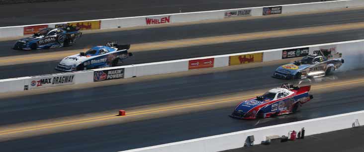 Funny Car final: Shawn Langdon, who scored his first career win in Top Fuel at zMAX Dragway in 2012, got his first Funny Car win at the same track and became the 17th driver to win in both the Top Fuel and Funny Car classes when he outlasted Robert Hight, John Force, and Matt Hagan.