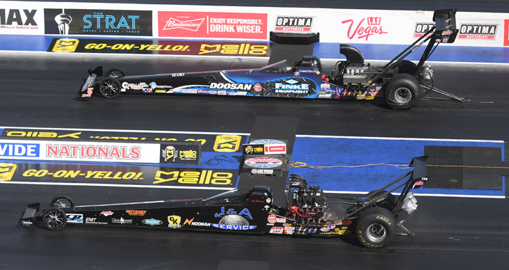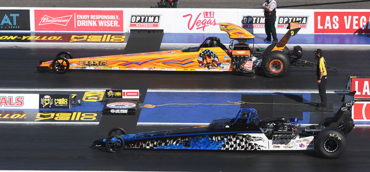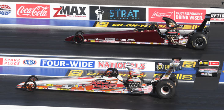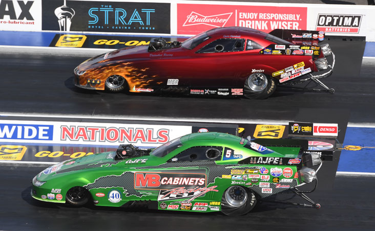 Jackie Fricke (Top Alcohol Dragster) and Chris Marshall (Top Alcohol Funny Car) led the list of Lucas Oil Drag Racing Series champions at the Denso Spark Plugs NHRA Four-Wide Nationals at The Strip at Las Vegas Motor Speedway. Final-round results in all classes: