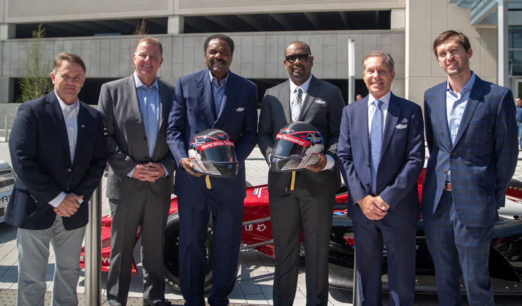Pictured at the announcement, from left: NHRA President Glen Cromwell; IndyCar President Jay Frye; David Steward, WWT Founder and Chairman; David Steward II, Polarity, Chief Executive Officer; Curtis Francois, CEO of WWT Raceway at Gateway; and NASCAR Managing Director Ben Kennedy. (Photo credit: Jon Knobelock, WWT)