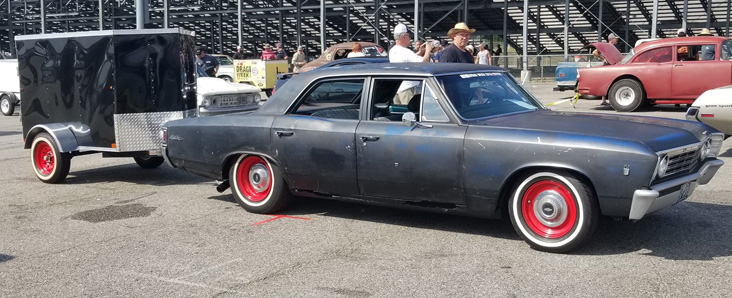If Reed wants to win the Charlotte exhibition, he’ll once again have to hold off Steinke, who finished in the No. 2 spot at Drag Week with an 8.539-second average. Steinke’s unique four door ’67 Chevelle is a staple of Drag Week events. It is his first car, and he’s owned it since 1993. Affectionately known as “Honk if Parts Fall off”, Steinke, from Holland, Pa., admits that his car is deceptively quick and looks nothing like an 8-second street car at first glance. Power comes from a small-block Chevy fitted with a single 88mm turbocharger.