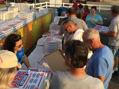 On Friday night, all racers and crew gathered for Pizza and Movie Racer Appreciation Night hosted by NHRA, JEGS, and National Trail Raceway as a way to thank the participants. Talladega Nights: The Ballad of Ricky Bobby played on a 20-foot outdoor projection screen, with catered-in pizza, popcorn and soft drinks for all to enjoy.