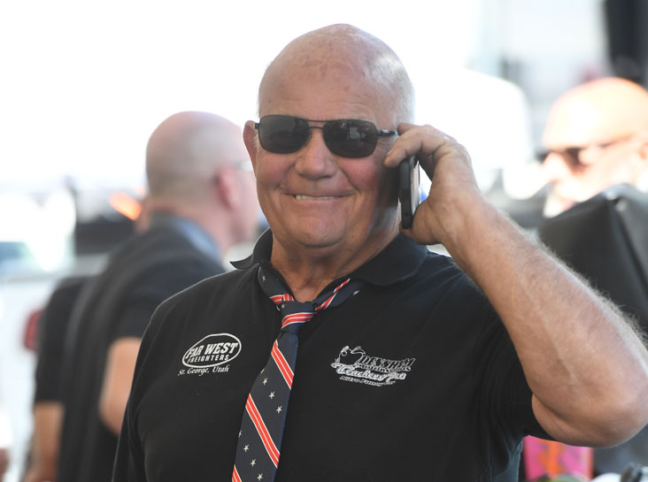 You don’t see many ties in the Funny Car pits, but veteran Gary Densham is breaking that trend thanks to a new partnership with GoTie.com, “the world’s fastest necktie.” His crew also were sporting them throughout the run.