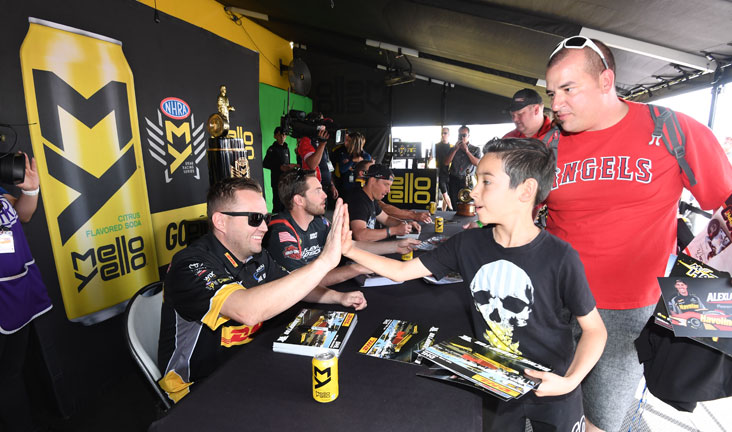 NHRA stars Richie Crampton, Alex Laughlin, Andrew Hines, and Matt Hagan took met fans and signed autographs at the Mello Yello display.