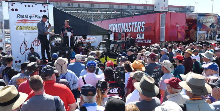 NHRA’s Alan Reinhart and Top Fuel driver Clay Millican taught some fuel-racing basics to the fans in the pits in the popular Nitro School session.