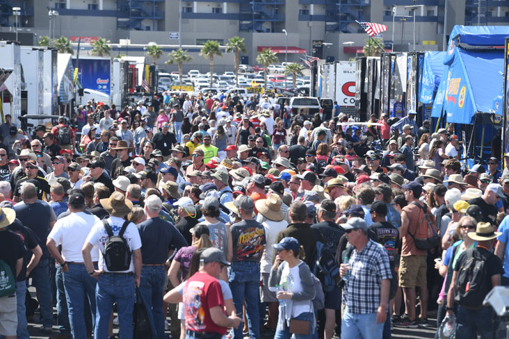 NHRA’s world-famous open pits drew hordes of fans eager to rub elbows with the NHRA racers.