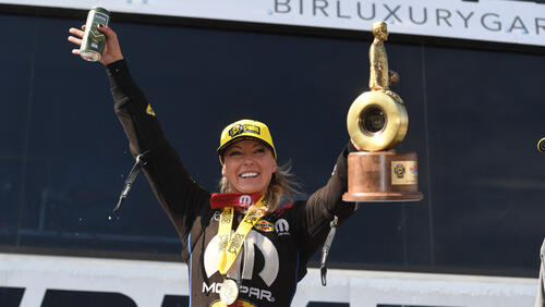 In a season where she should have been one of the leading contenders for the championship, Leah Pritchett admitted that at times she felt like anything but a champion, especially after a frustrating summer stretch that produced a round one exit in six of eight races. Pritchett and her Mopar team struggled to maintain her confidence, but that no longer appears to be an issue after she broke a 26-race winless drought at the Lucas Oil NHRA Nationals in Brainerd, where she used a string of 3.7s to reach the final round, and then took down Mike Salinas for her eighth-career Top Fuel title and 14th win overall including Pro Mod and Factory Stock.