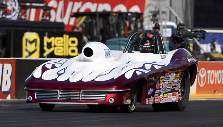 At the end of 2013, Zak drove to his first national event title in Pomona, and he returned to Auto Club Raceway at Pomona to open 2019 with a second title in Super Gas. In his ’27-T Ford roadster, Zak motored to the winner’s circle with a slowing 10.73 after final-round opponent Evan Kowalski fouled by a slim four-thousandths margin. The semifinal battle between Zak and Mike Wiblishouser was easily one of the best races of the weekend regardless of class with both cars separated by just .0005-second at the finish line stripe. [Video]