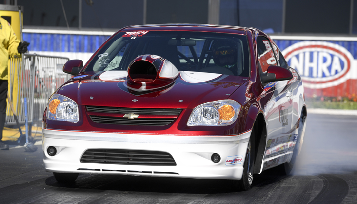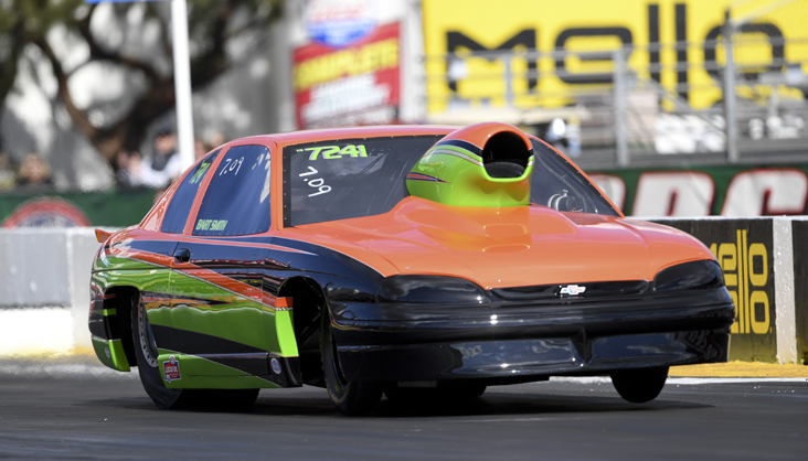 Two years after winning his first national event title in Sonoma, Smith returned to drive his Monte Carlo to a second title in Top Sportsman presented by Racing RVs. Smith was also on top of his driving game, including a near-perfect .005-second package in the quarterfinals to top two-time Pomona Comp winner Jeff Gillette. Smith had to face Mike Ferderer in the final and came away with the win by just seven-thousandths thanks to a 6.976 on his 6.96 dial. [Video]