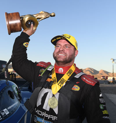 The Dodge Charger Hellcat Widebody Funny Car has been on an incredible roll, and not just on Sundays. It’s run in the three-second zone on 22 of its last 25 runs and turned on the win light the eight times it’s gone down the track on Sundays. In winning in Dallas, they made four runs Sunday between 3,903 and 3,909.