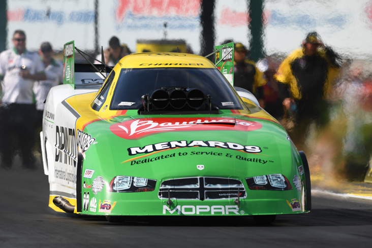 Jim Campbell, driving the special edition Menards/DiPinto paint scheme on "Big Jim" Dun's Dodge Charger Funny Car, kicked off nitro qualifying with a respectable 4.163.