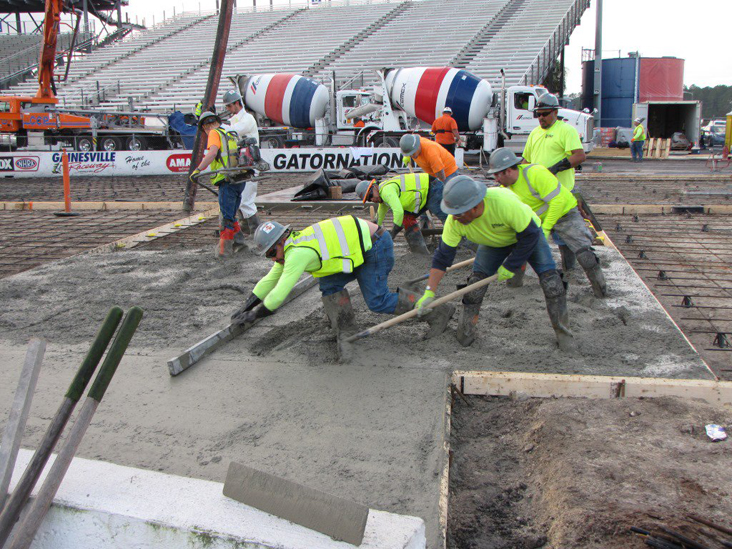 Construction continues at Gainesville Raceway ahead of this year’s blockbuster 50th annual Amalie Motor Oil NHRA Gatornationals with the pouring of concrete that will provide what historically has been one of the best racetracks in the country with an all-concrete racing surface that will only enhance its reputation. New asphalt will also be installed beyond the finish line.