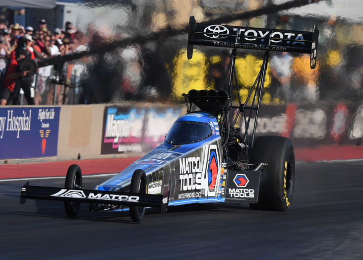 Pritchett, the defending Denver Top Fuel winner, was especially popular with the Denver fans. Pritchett's busy Thursday included early-morning television appearances, the NHRA press conference and media race at midday, and the Mopar Block Party.