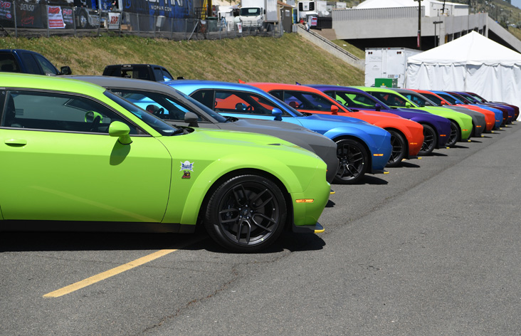 The Dodge presence at Bandimere Speedway is impressive with many new models on display including a row of high performance Dodge Charger and Dodge Challengers featuring some of the manufacturer's most desirable color combinations.