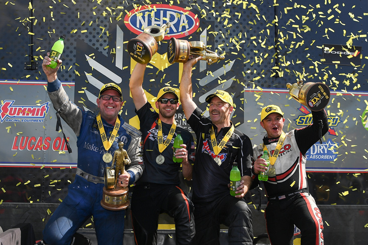 Your 2019 Denver winners, from left, Tommy Johnson Jr., Andrew Hines, Greg Anderson, and Steve Torrence.