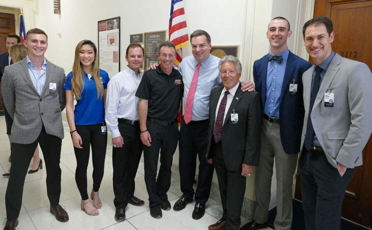 The day on Capitol Hill was capped off with a reception coordinated with support from the Congressional Motorsports Caucus, an informal, bipartisan group of members dedicated to celebrating motorsports of all varieties and understanding their impact on American culture and the economy. Several drivers joined the National Motorsports Coalition in visiting with a group of nearly 200 Congressional members and their staff, including: Trent Hindman (IMSA); Mario Andretti (IndyCar); Kyle Busch, Austin Cindric, Brad Keselowski and Joey Logano (NASCAR); and Tracey Gardiner and Samantha Tan (USAC). Guests heard remarks from ACCUS President George Silbermann and Representatives Mike Thompson, Bill Posey and Richard Hudson. Other special guests included representation from Speedway Motorsports, Inc., and Iowa Speedway.