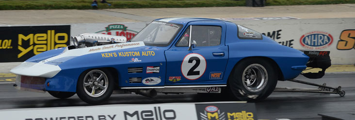 Schroeder rounds out the lineup with his bright blue 1966 Corvette, the only nitrous-huffing machine in the group and the winner of Drag Week in 2017.