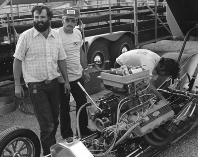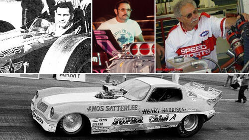 While people tend to think of Satterlee as a Southern California product, he actually grew up on the family farm in Adrian, Mo., south of Kansas City with brothers Paul, William, and Bobby and sisters Jesse and Marie, all of whom have passed. William (Harold’s father) worked in the Passenger Paint division at Ford’s Kansas City assembly plant, and Amos loved his Fords, especially that crazy SOHC 427 that powered everything from Jack Chrisman’s Comet Cyclone to John Aleman’s Sheepherder Fuel Altered, which was driven in the mid- to late-1970s by a lot of guys, most notably Henry Harrison, with whom I most closely align Satterlee’s name from my formulative years as a Funny Car fan in the early 1970s. That's Aleman, left, Satterlee, and the famed SOHC engine at right.