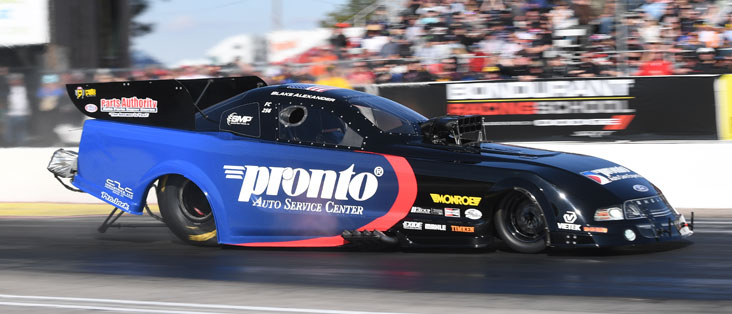 Blake Alexander’s good-looking Pronto Service Center Mustang qualified in his return to the class, but exited in round one against fellow Ford runner Bob Tasca III.