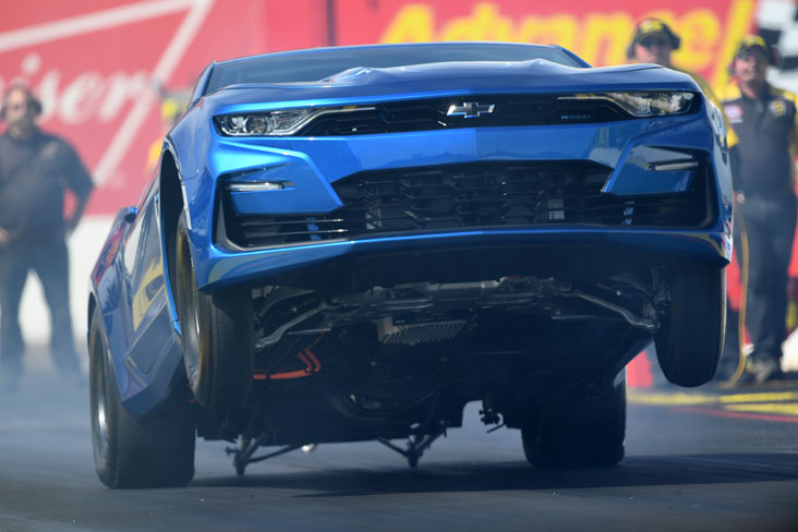 The amazing electric eCOPO of Patrick McCue and Leff Lane dropped jaws with a big wheelstand and hit a career best e.t. of 9.783 at 133.54 mph on an exhibition pass.