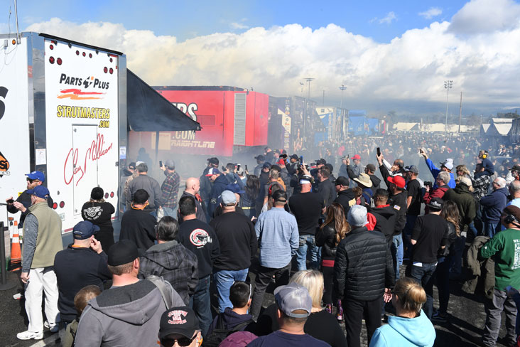 The pits in Pomona were packed and the cellphones were out in force as Clay Millican warmed up.