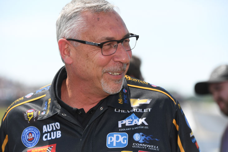 Mike Green, who switched places with Shaffer and is now tuning Austin Prock’s Montana Brand/Rocky Mountain Twist dragster for John Force [story].