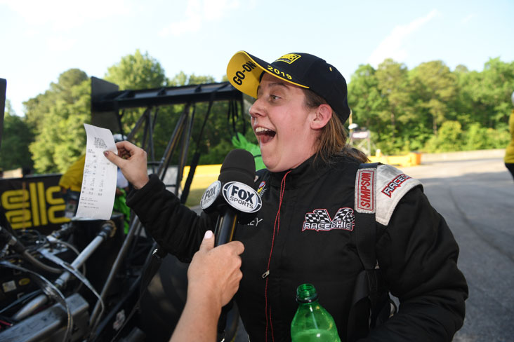 Audrey Worm was ecstatic after she recorded her first three-second run in Top Fuel to secure a spot in the field.