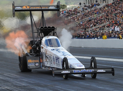 “Pomona was a blur, and it was definitely nerve-racking; Q1 was the first time I ever went to the finish line and went over 300 mph. We got a round win over the champ, Brittany Force, in a pedalfest and the parachutes didn’t come out at the other end but I got it stopped at the shortest shutdown on the circuit.