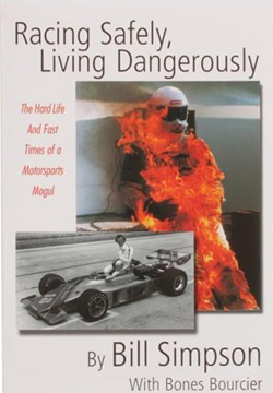 A chance meeting with astronaut Pete Conrad in 1967 introduced him to the fire-retardant material Nomex being used by NASA and Simpson quickly saw its value for motorsports, where early drivers would face the danger of fire with nothing more than a leather jacket or a nylon suit soaked in a fire retardant chemical. Simpson was so sure of the protection offered by his suits that the often allowed himself to set be set alight in publicity photos to prove their worth. It was the main image on the cover of his autobiography, Racing Safely, Living Dangerously.