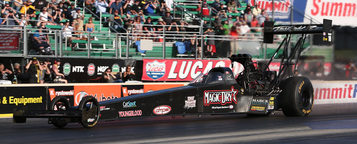 In Chicago, he ran 3.82 but lost to Mike Salinas’ 3.73. In Topeka, his 3.82 was no match for Antron Brown’s 3.74. Last weekend in Bristol, Salinas blasted him again, 3.80 to 3.90. Even though he’s in 12th place, he’s just two rounds out of 10th, he’s decided that enough is enough.