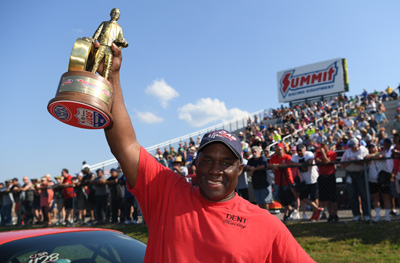 The best of the rest: A first-time winner was crowned in Stock when Maryland’s Wallace Dent Jr. crossed the finish line ahead of Joe Lisa in the final round. Dent, wheeling his C/SA Camaro, began his season at the Division 2 Lucas Oil Series event in Gainesville in March and hadn’t run another NHRA event until Richmond. He quickly made up for lost time with a strong performance that included wins against Phil Lankford, Raymond Skipper, Jeff Longhany, and Super Stock champ Santangelo, who came up just two rounds short of a double. Dent’s most impressive performance came in round three where he used a .009 light to help get past Longhany. In the final, Dent gave up a slight lead at the start against Lisa’s E/SA Camaro but managed to inch ahead at the finish line to win by .002-second.