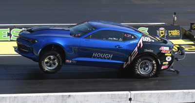 Rizzoli came within four-thousandths of a second of a third win in two weeks but dropped the Stock final to Andy Morris, who was racing in his third Seattle final in his third class. Morris, a previous Seattle winner in Top Dragster and a runner-up in Super Comp, drove his FS/A COPO Camaro to a 9.381 on his 9.37 dial to knock off Rizzoli, who was close behind with a 10.323 on his 10.31 dial. Morris made it to the final following wins against Greg Marshall, Tommy Gaynor, Joe Sorensen, and Kelly Thomas. Morris’ round three battle with Sorensen’s ’69 Camaro was also close with a .004-second margin of victory.