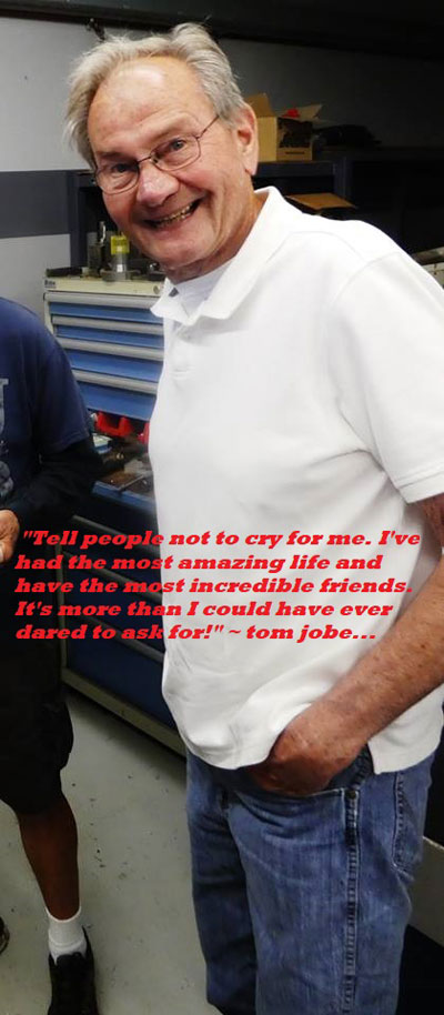 “I had the privilege of working with Tom for over 19 years and enjoyed and learned heavily from it all,” he wrote. “It took me about 2–3 days of working with him, after Bruce Burness had told me that because he didn’t have time to do some fabrication work, that Tom could do it. After getting back to Bruce to thank him for putting us on to Tom, Bruce said, ‘He’s an excellent fabricator and machinist but you want him for his mind. His brain is his most important aspect.’ And he was right.